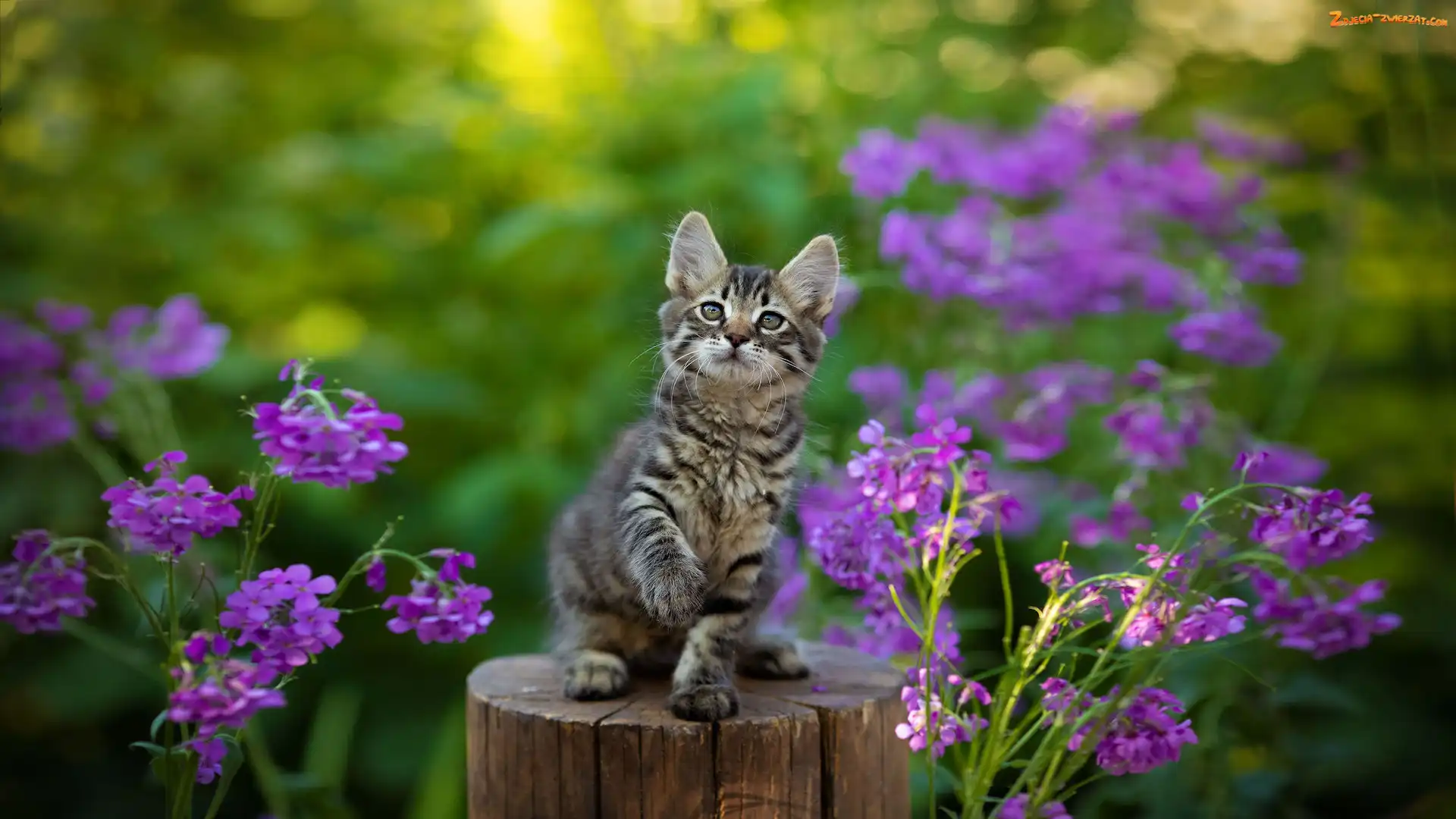 Zdjęcie: Kot, Kotek, Kwiaty, Pieniek