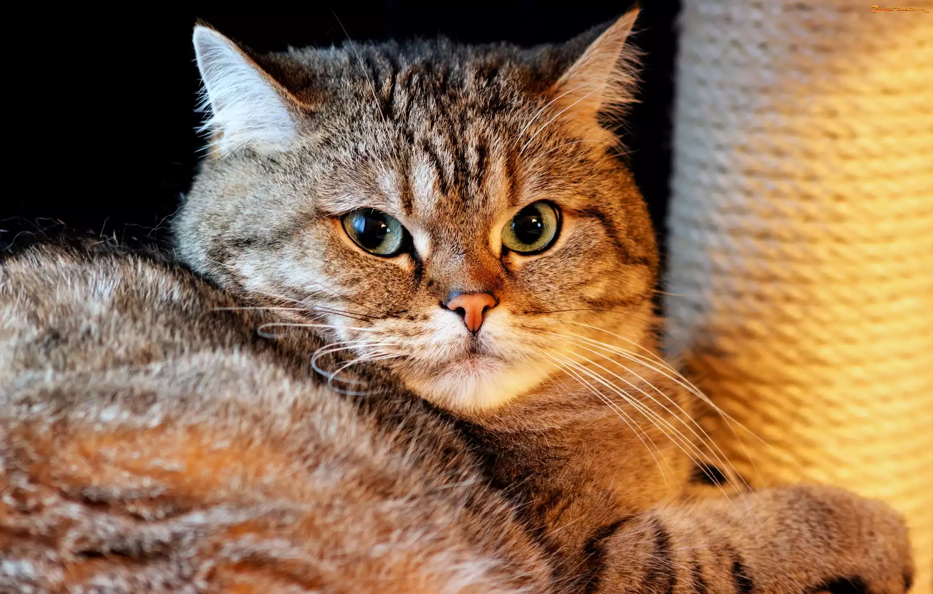Zdjęcie: Bury, Kot, Drapak, Spojrzenie