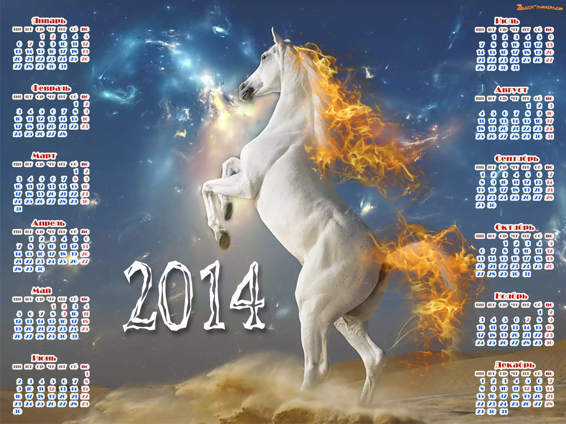 Zdjęcie: 2014, Ogień, Kalendarz, Koń