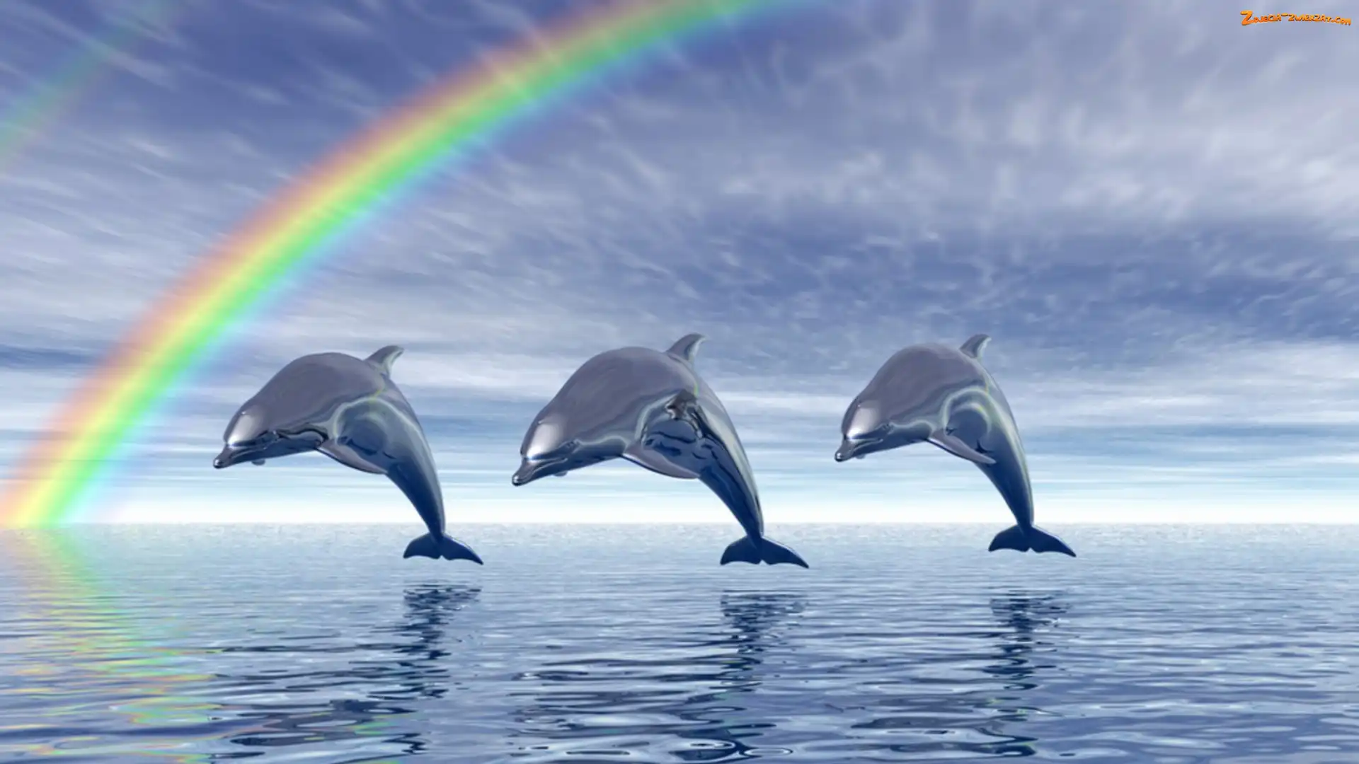 Zdjęcie: 3D, Woda, Delfiny, Trzy, Tęcza