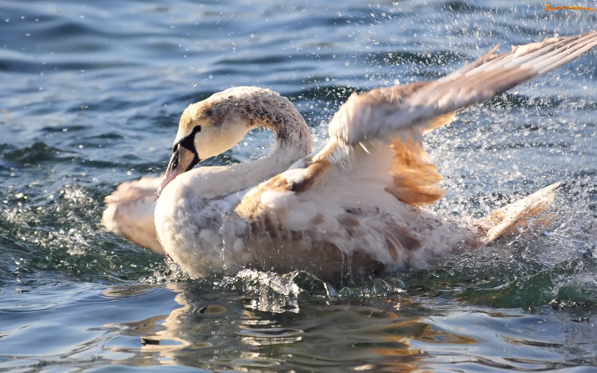 Zdjęcie: Kąpiel, Łabędz, Skrzydła