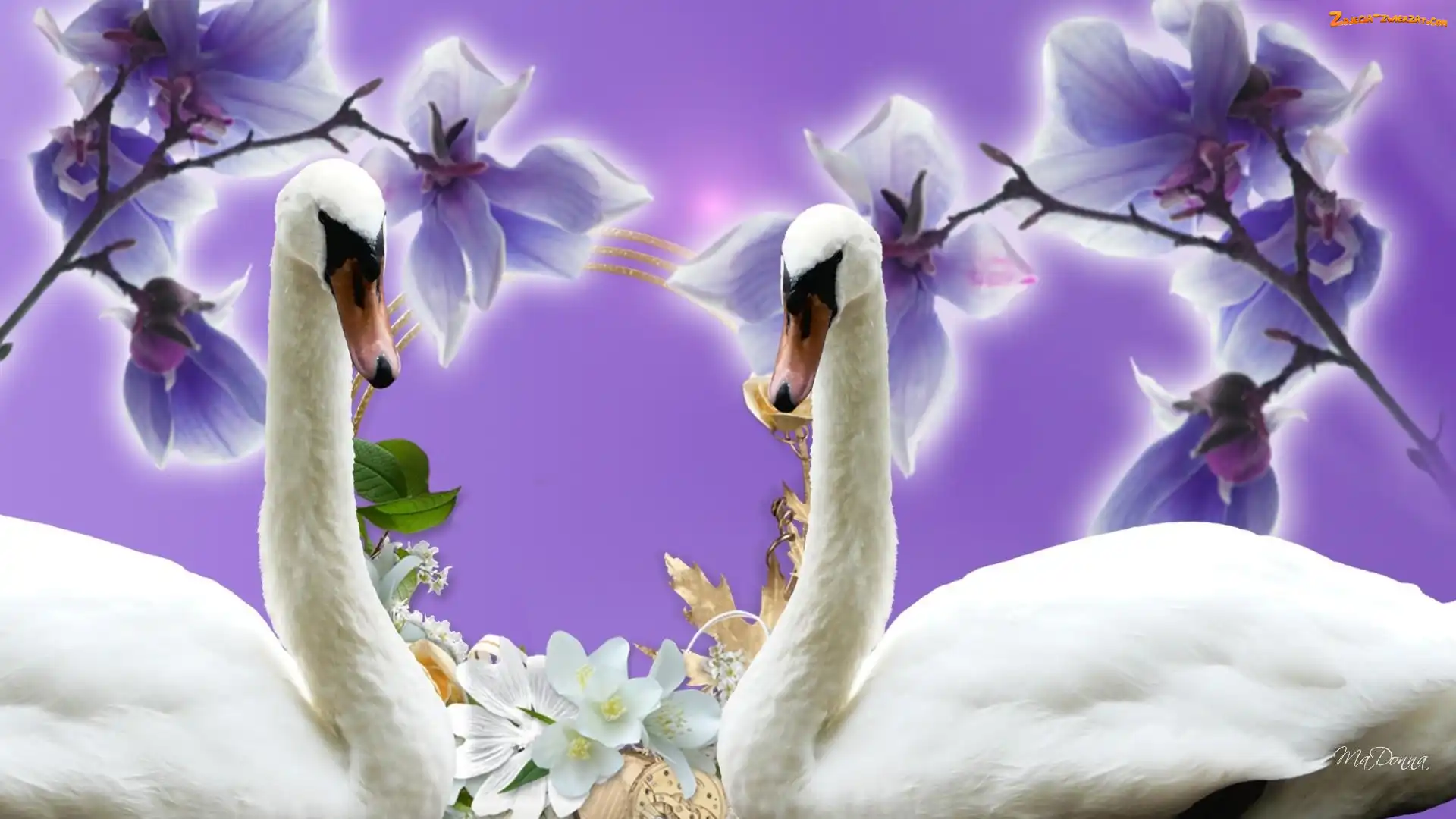 Zdjęcie: Grafika, Łabędzie, Orchidea