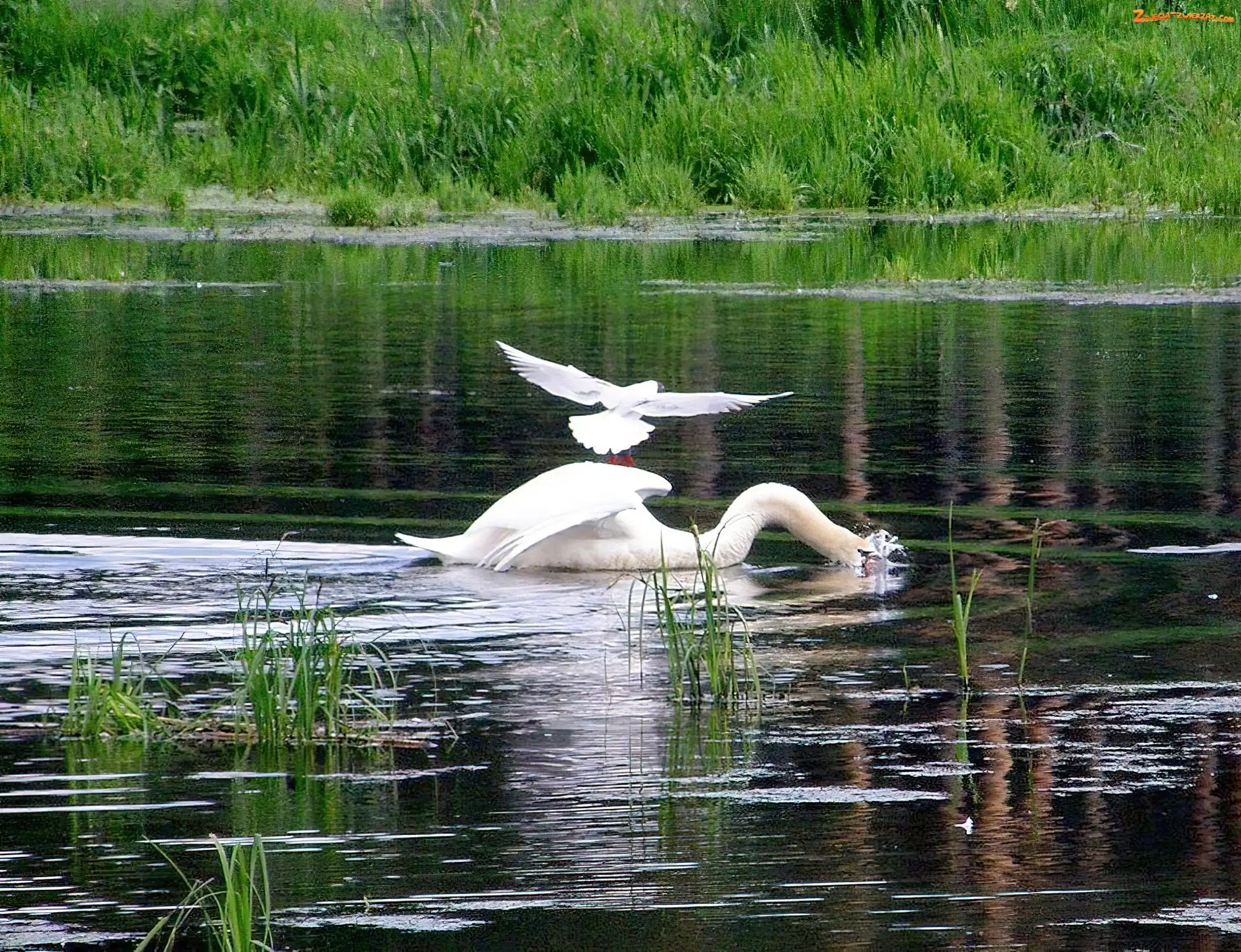 Trzcina, Łabędzie, Jezioro