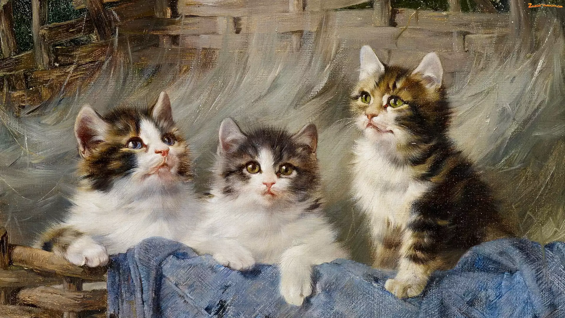 Zdjęcie: Julius Adam, Kocięta, Trzy, Malarstwo, Obraz, Koty, Kosz