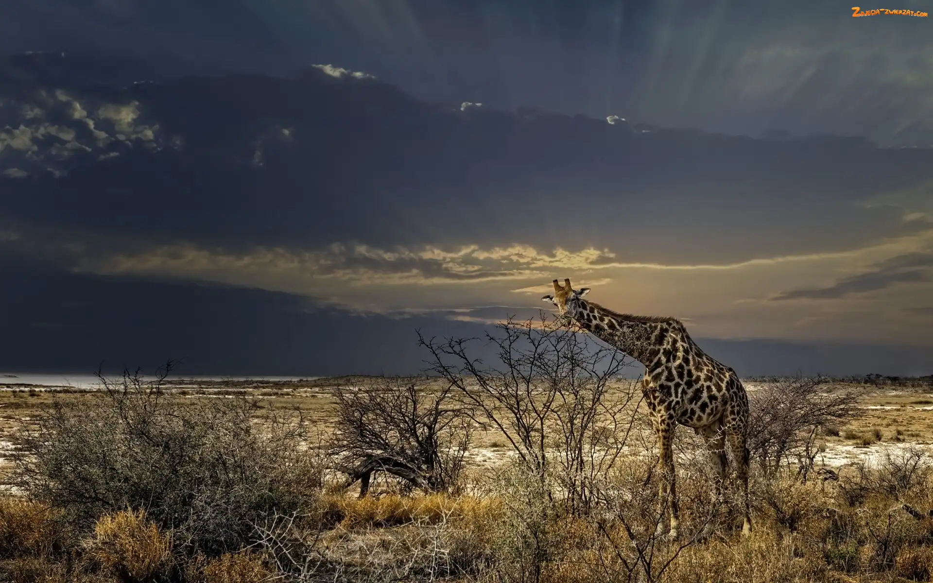Zdjęcie: Afryka, Sawanna, Krzewy, Żyrafa, Chmury