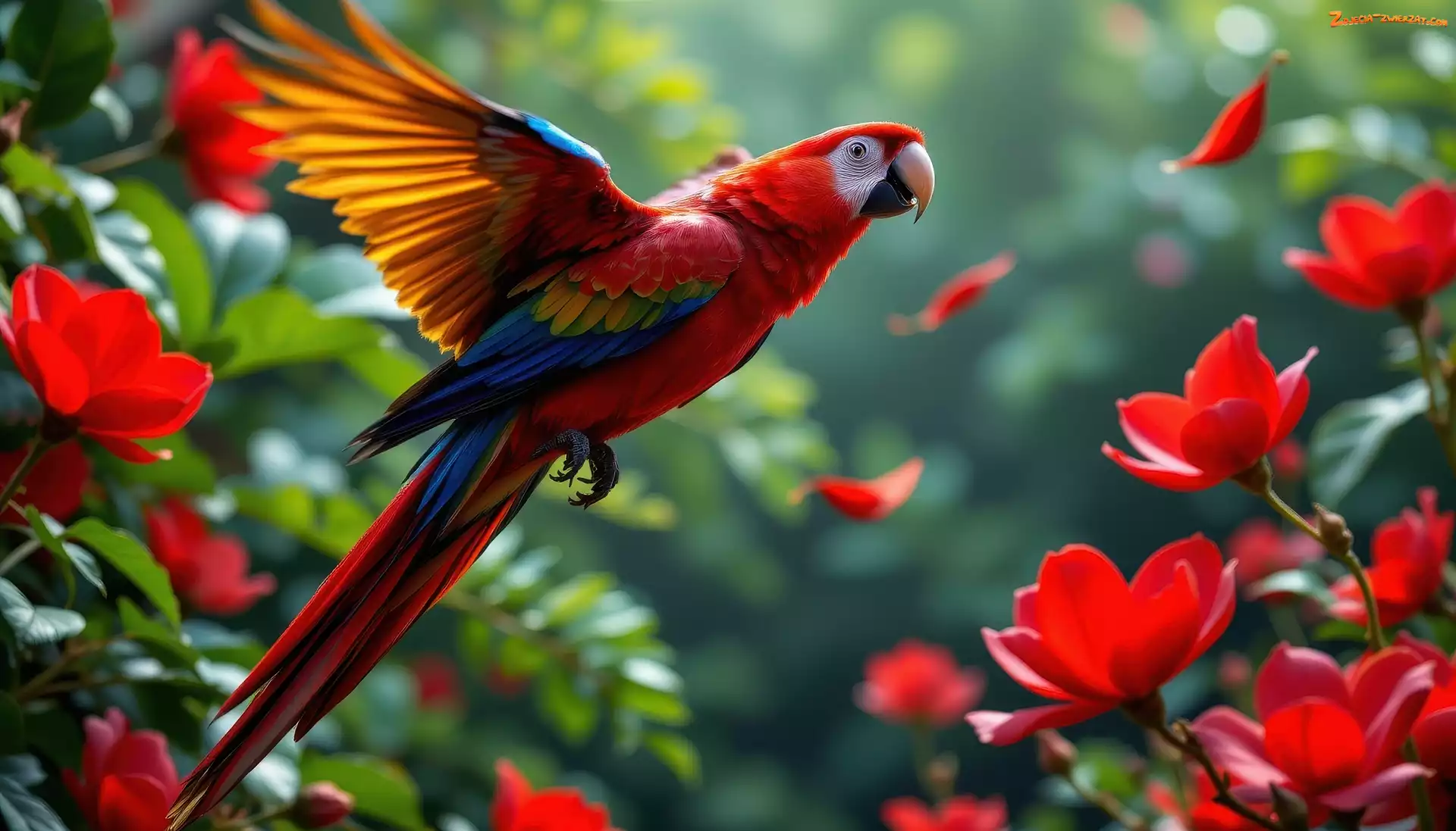 Zdjęcie: Kwiaty, Lot, Grafika AI, Papuga, Ara