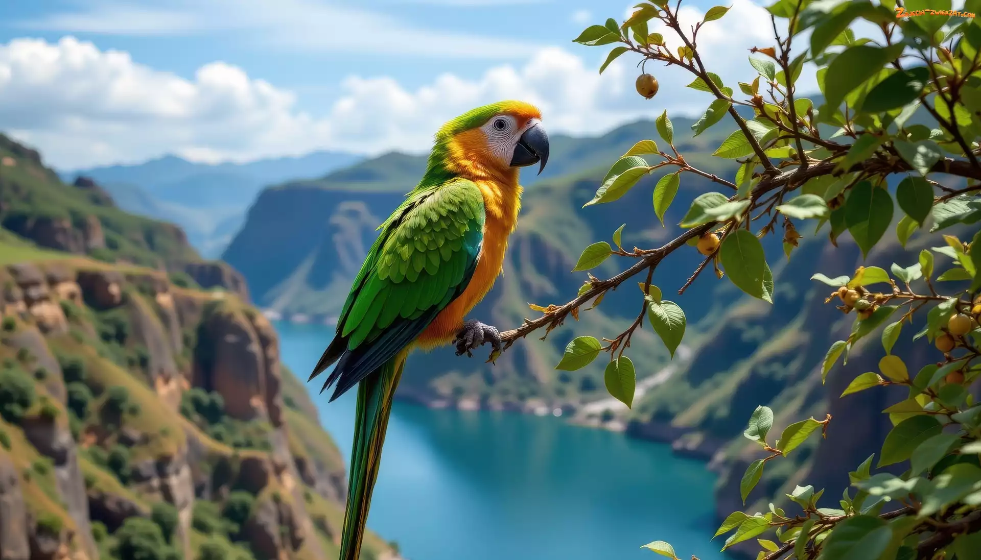 Zdjęcie: Rzeka, Gałąź, Grafika AI, Papuga, Ara