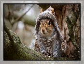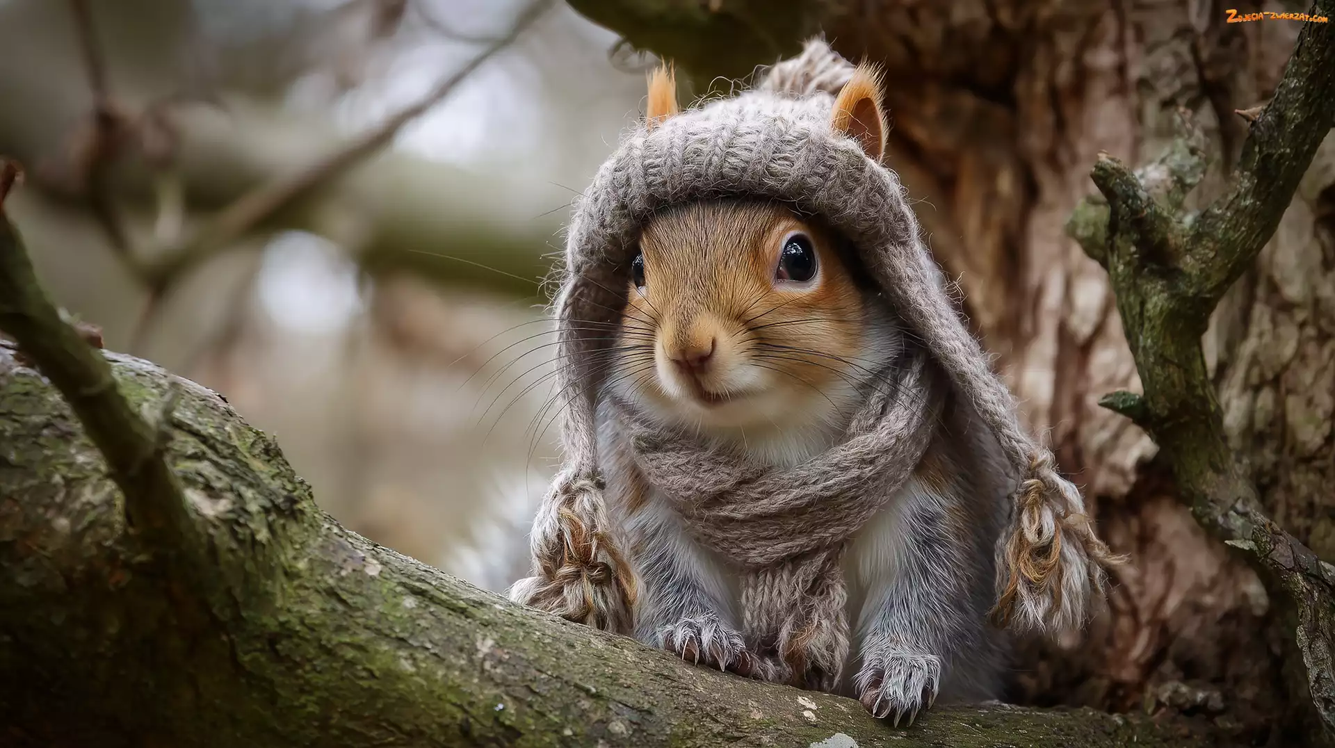 Zdjęcie: Drzewo, Szalik, Grafika AI, Wiewiórka, Czapka