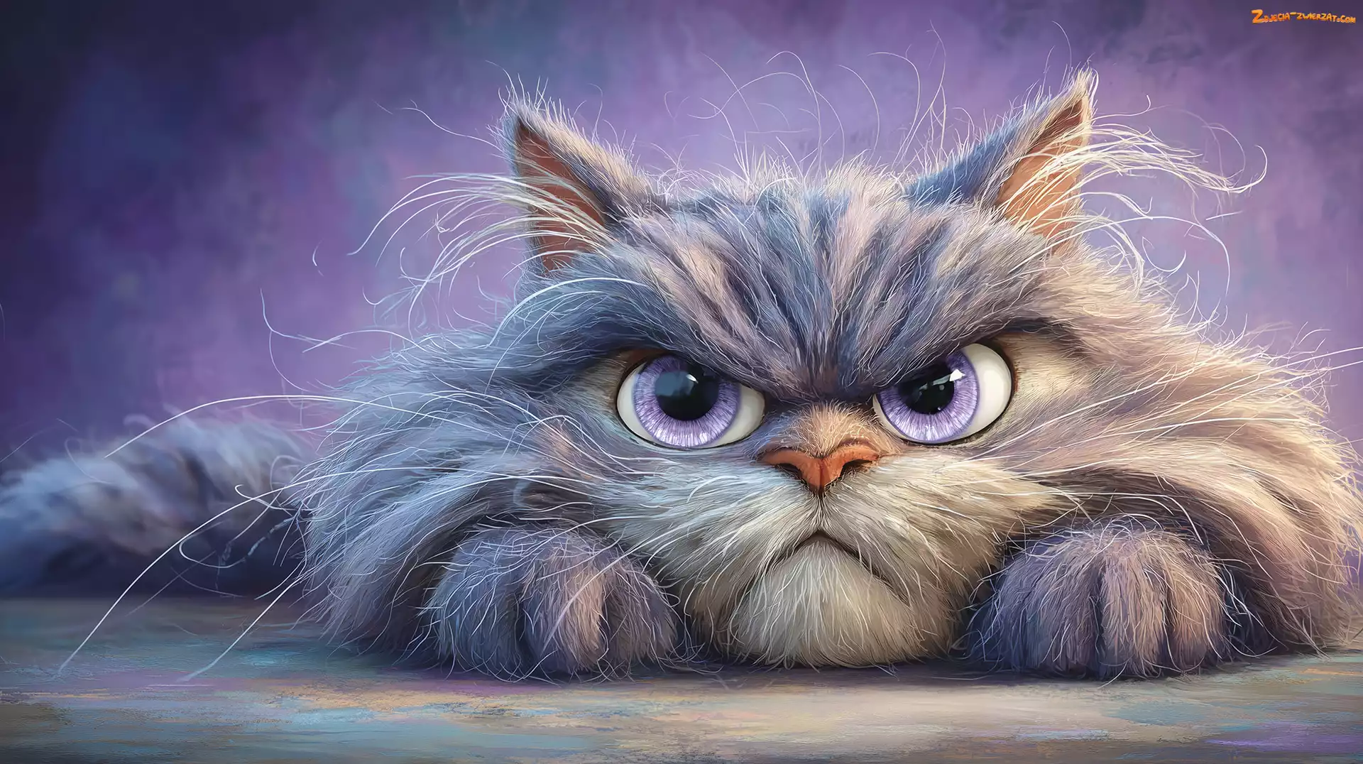 Zdjęcie: Grafika AI, Fioletowo-szary, Kot