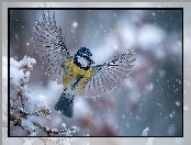 Zdjęcie: Zima, Gałązka, Grafika AI, Sikora modraszka, Skrzydła