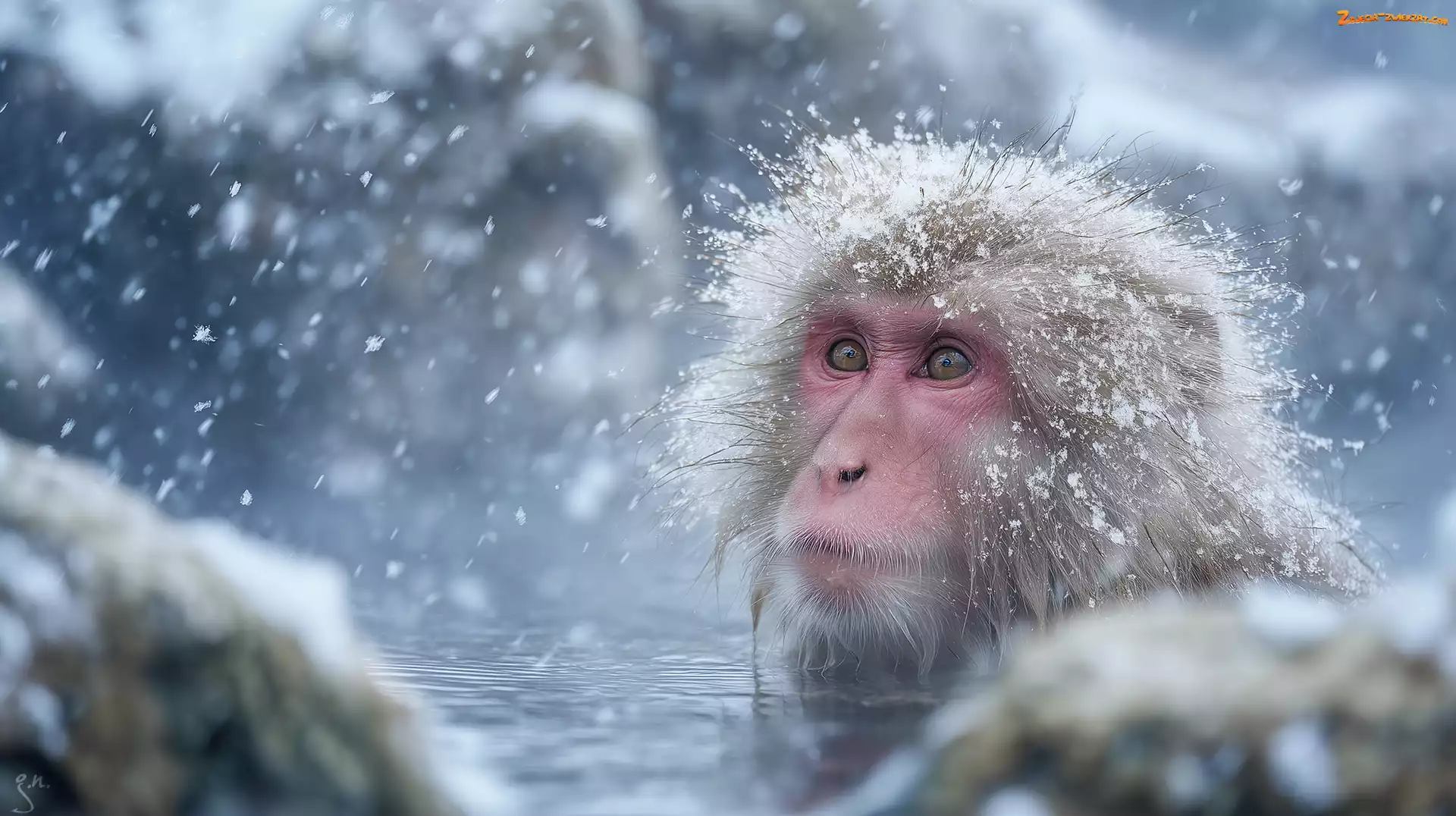 Zdjęcie: Zima, Kąpiel, Grafika AI, Małpa, Makak japoński
