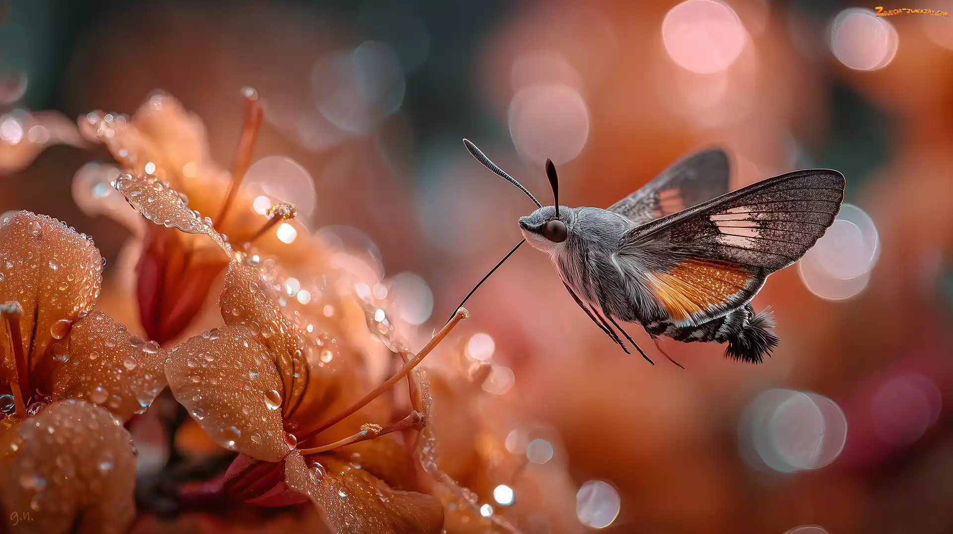 Zdjęcie: Makro, Kwiaty, Grafika AI, Fruczak gołąbek, Motyl