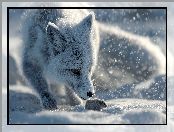 Zima, Śnieg, Grafika AI, Lis polarny, Mysz