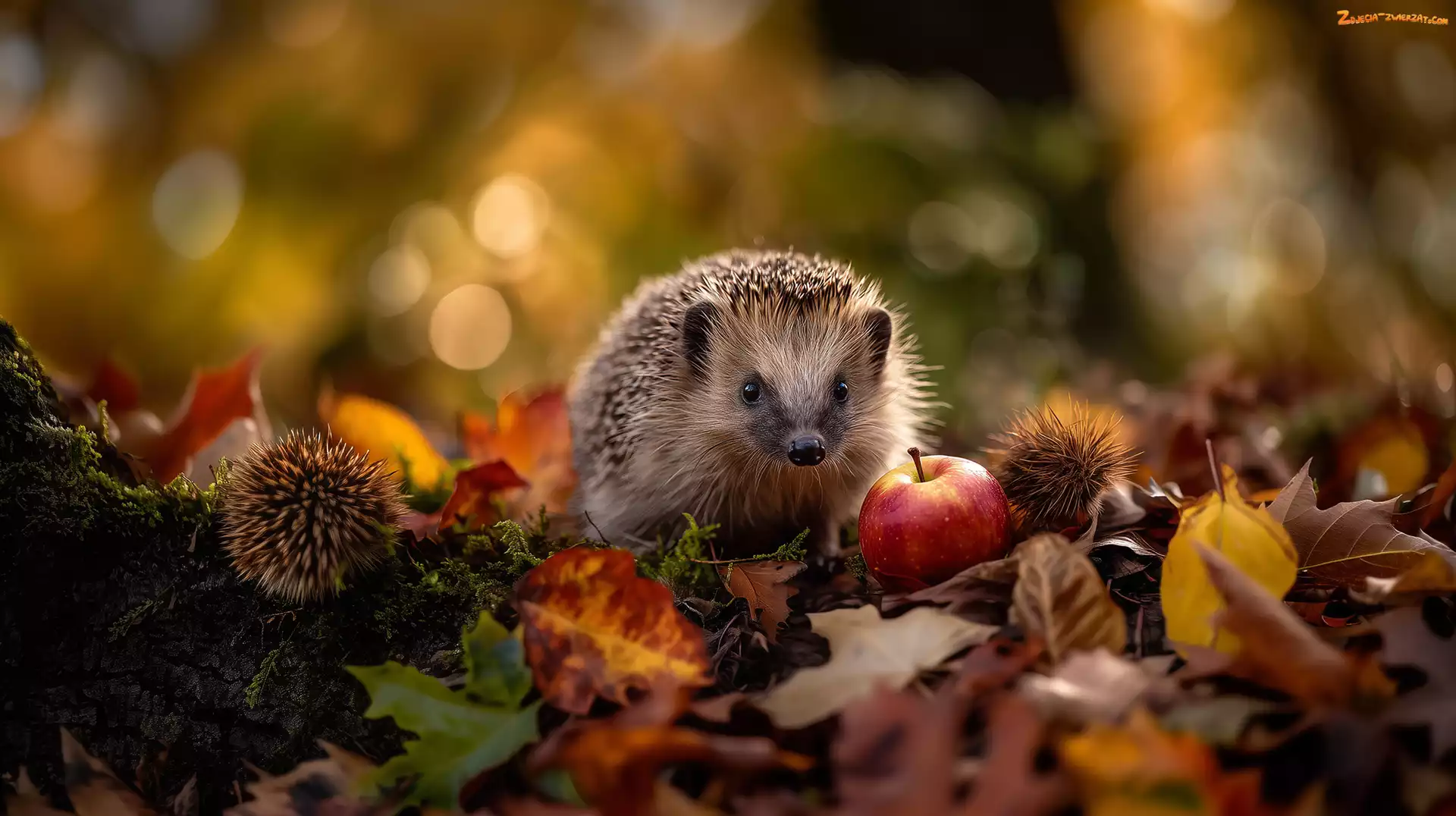 Zdjęcie: Liście, Pożółkłe, Grafika AI, Jeż, Jabłko