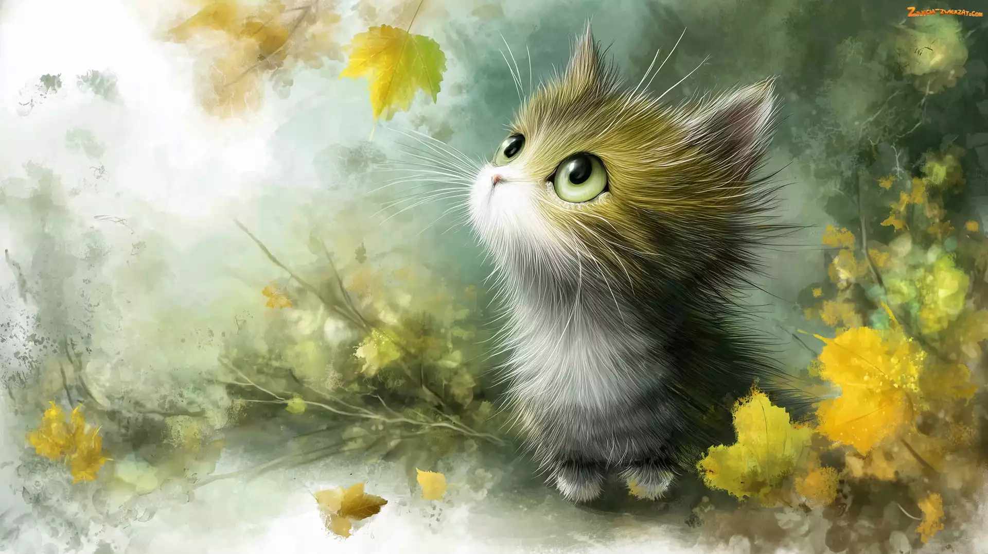 Zdjęcie: Liście, Jesienne, Grafika AI, Kotek, Kot