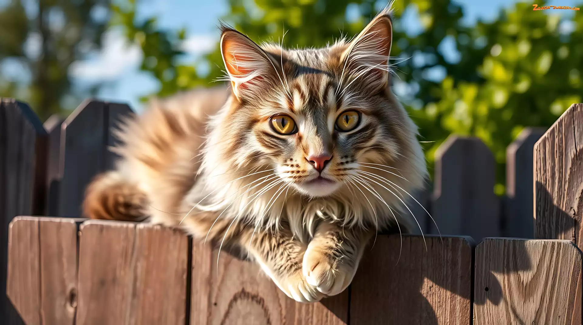 Zdjęcie: Płot, Drewniany, Grafika AI, Długowłosy, Kot