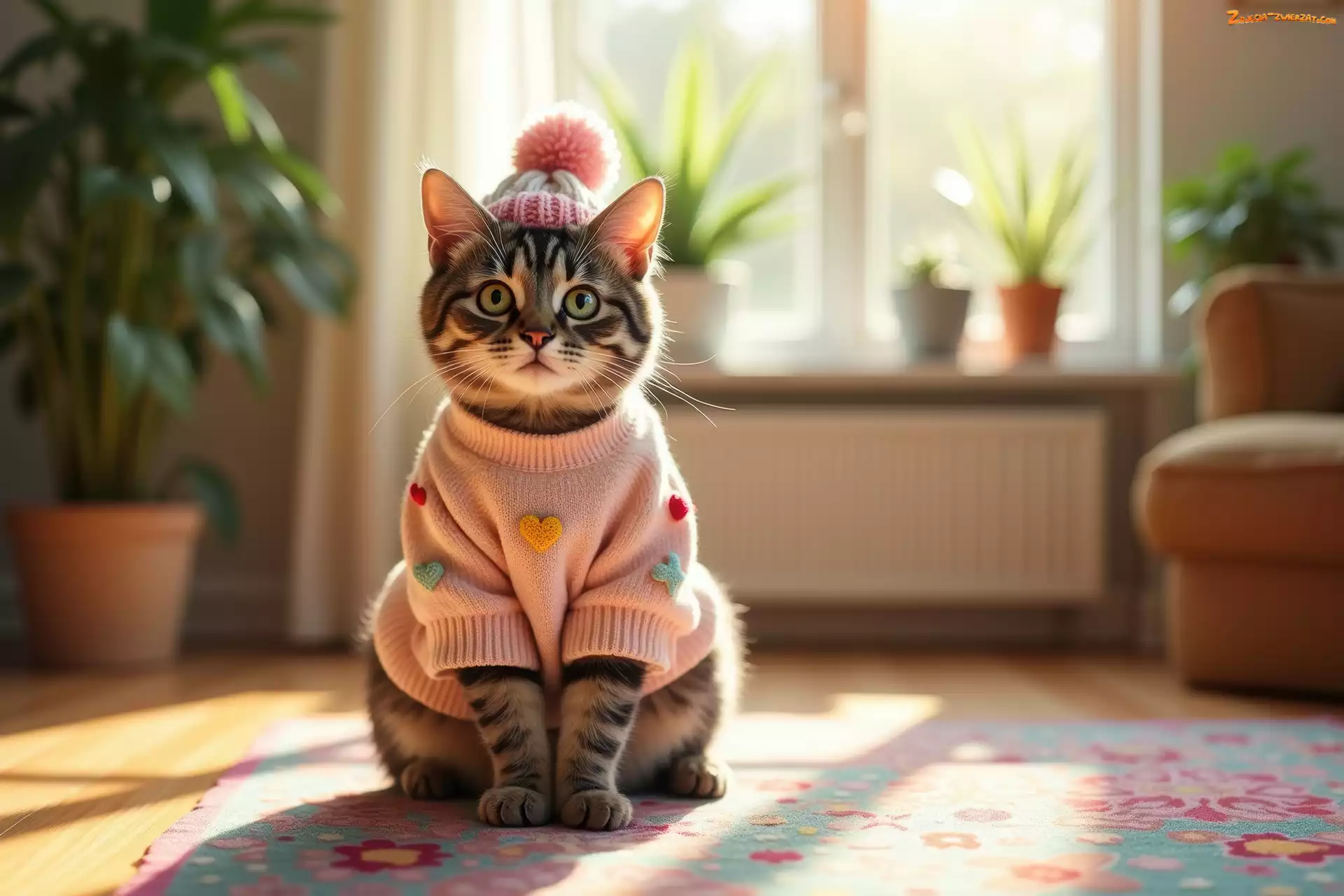 Zdjęcie: Sweter, Czapka, Grafika AI, Bury, Kot
