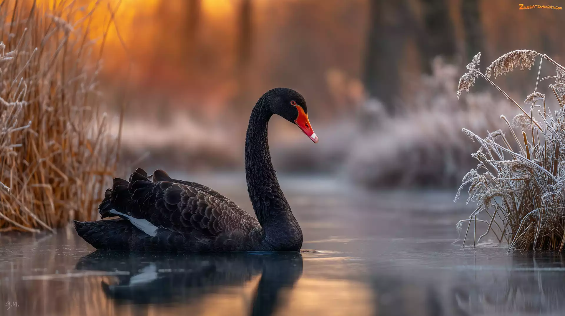 Zdjęcie: Zarośla, Staw, Grafika AI, Czarny, Łabędź
