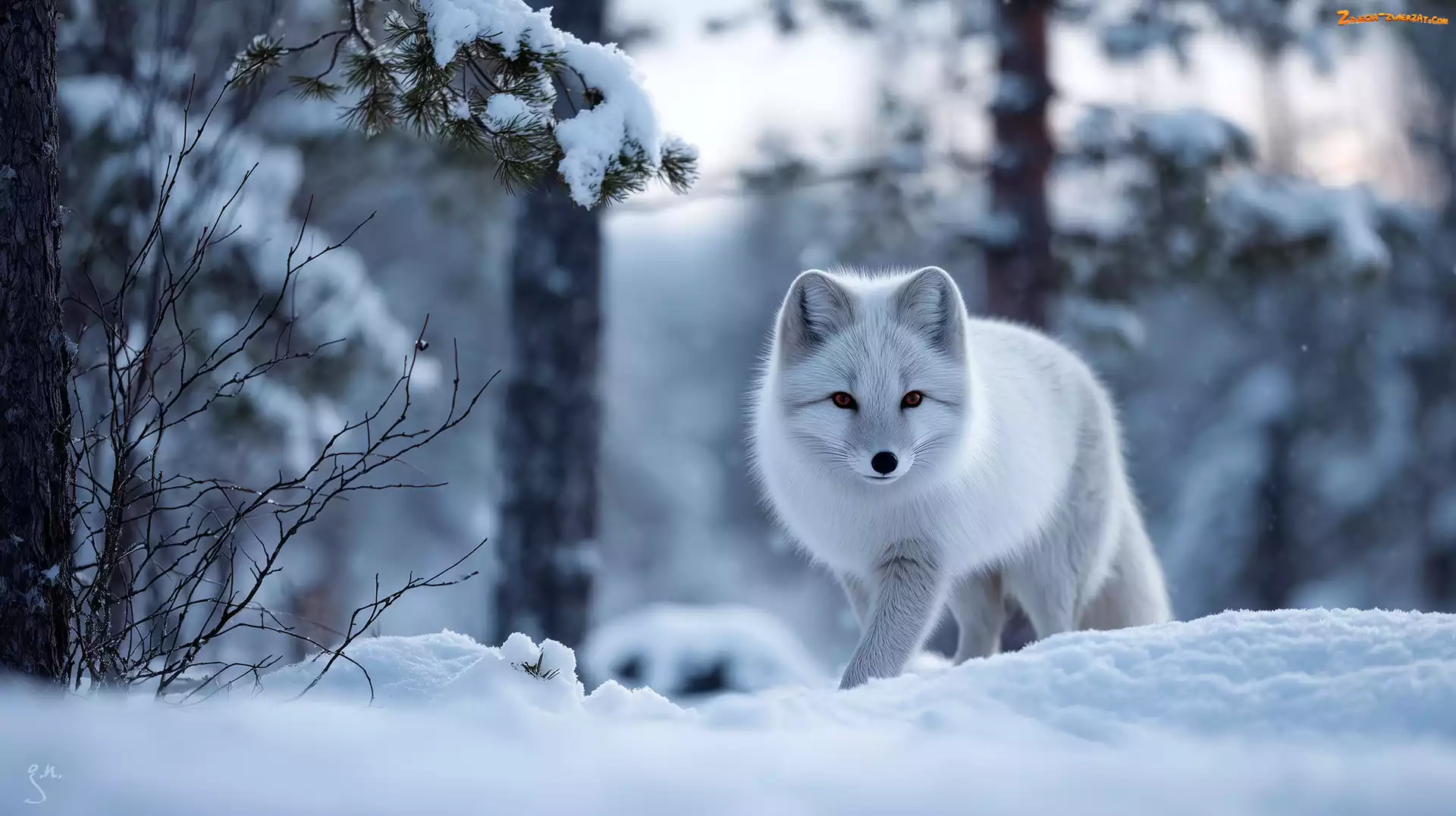 Zdjęcie: Zima, Las, Grafika AI, Biały, Lis