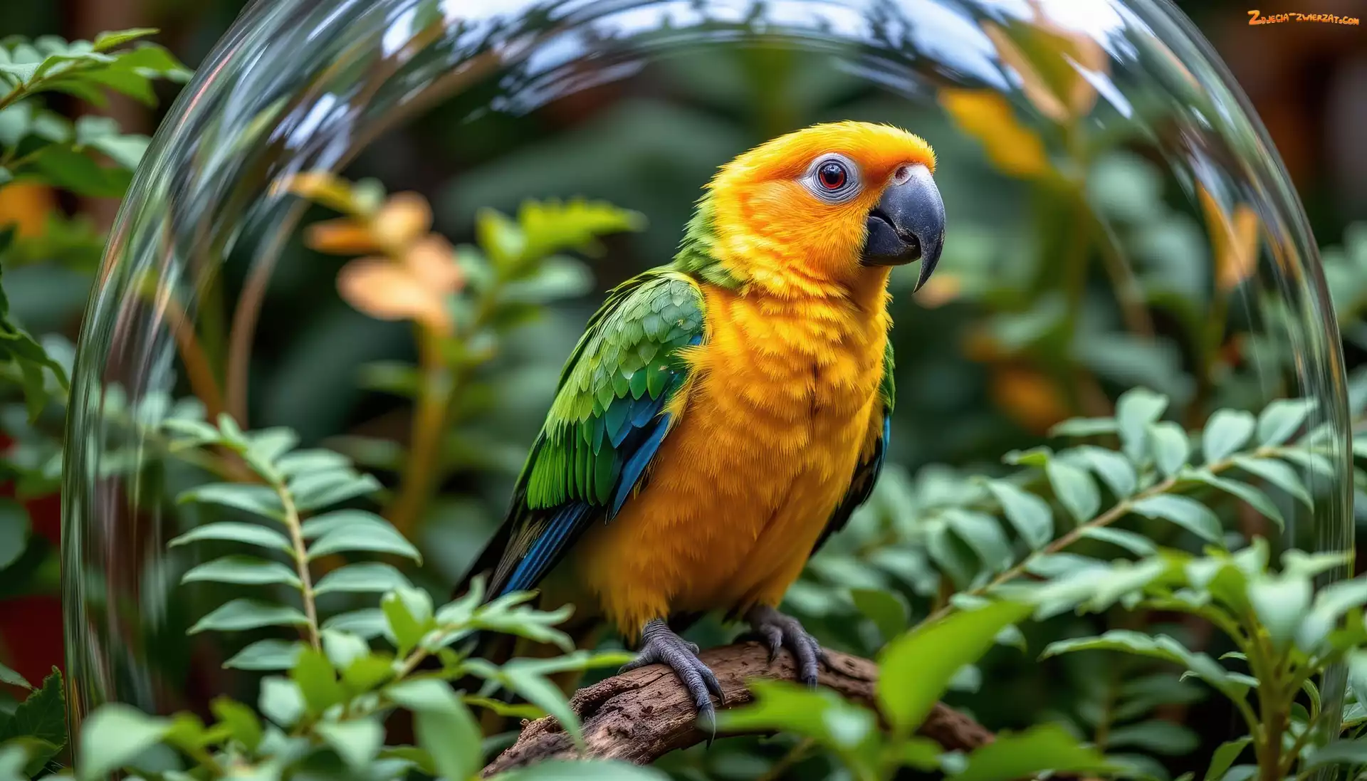 Zdjęcie: Kula, Szklana, Grafika AI, Papuga, Liście