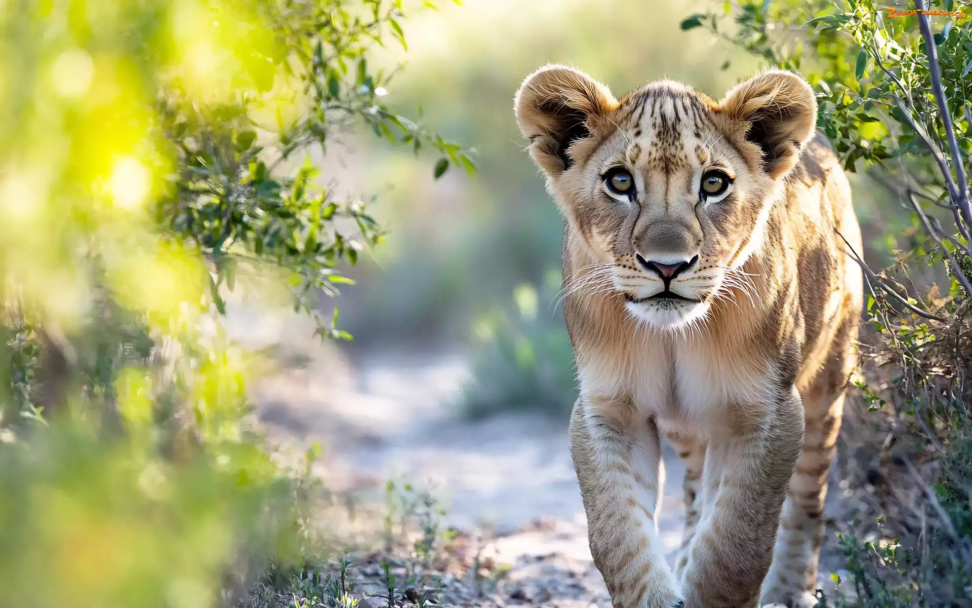 Zdjęcie: Ścieżka, Gałązki, Grafika AI, Lew, Lwiątko