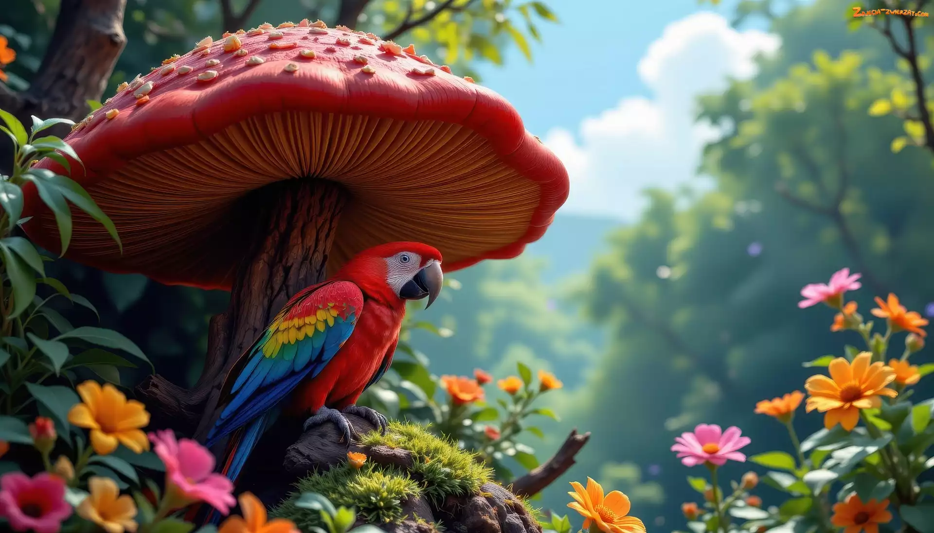 Zdjęcie: Kwiaty, Ara, Grafika AI, Grzyb, Papuga