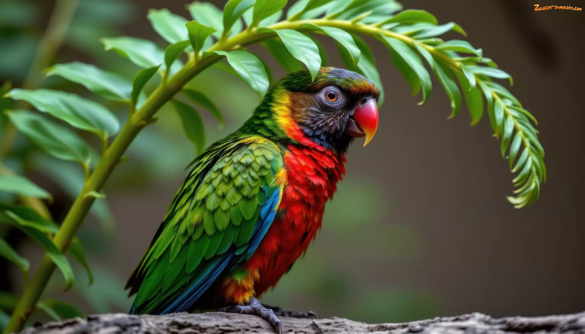 Zdjęcie: Liść, Ptak, Grafika AI, Kolorowa, Papuga