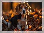 Zdjęcie: Liście, Szczeniak, Grafika AI, Beagle, Pies