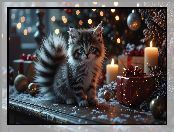 Choinka, Świece, Grafika AI, Kot, Prezent