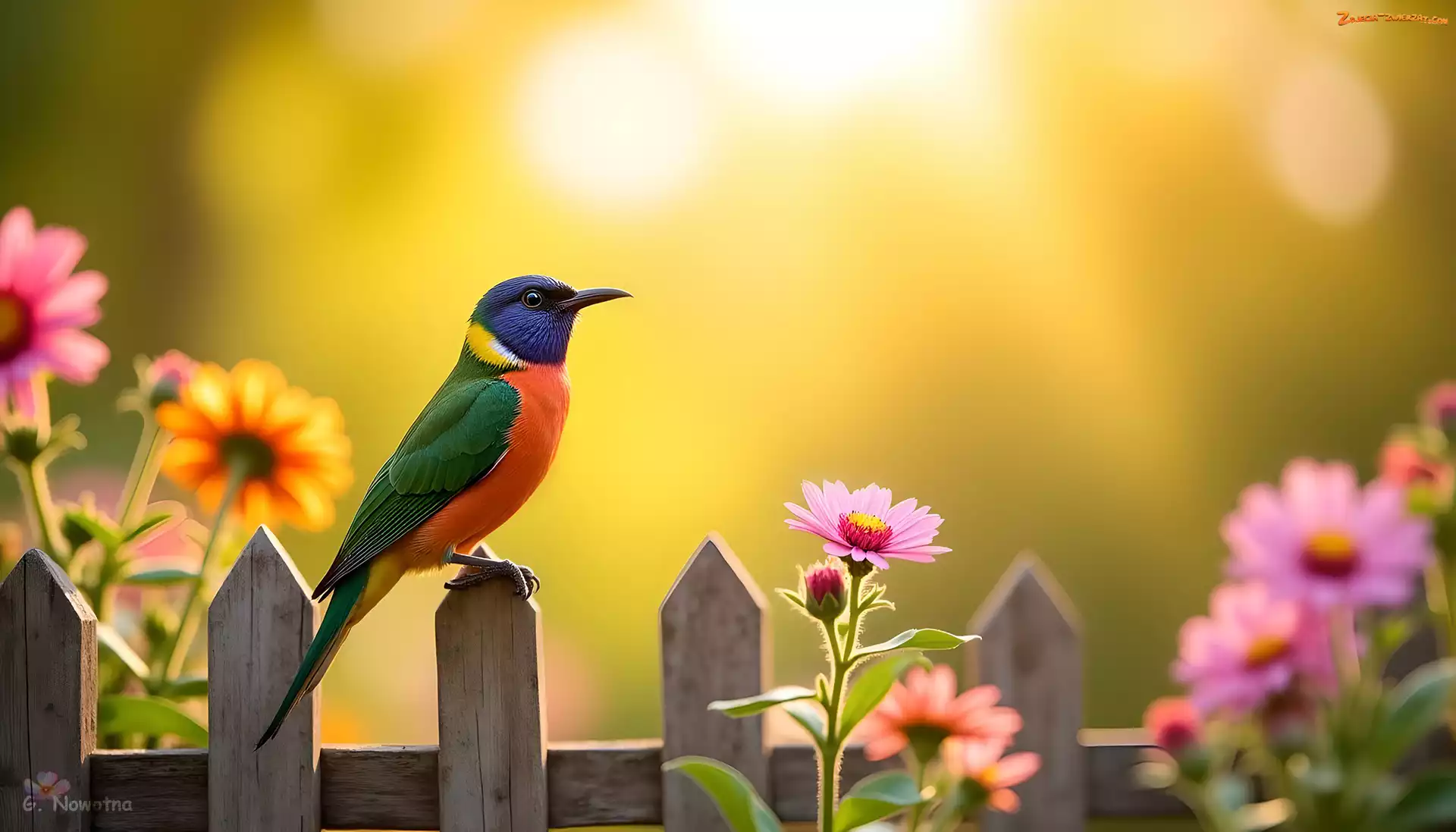 Zdjęcie: Kwiaty, Płot, Grafika AI, Kolorowy, Ptak