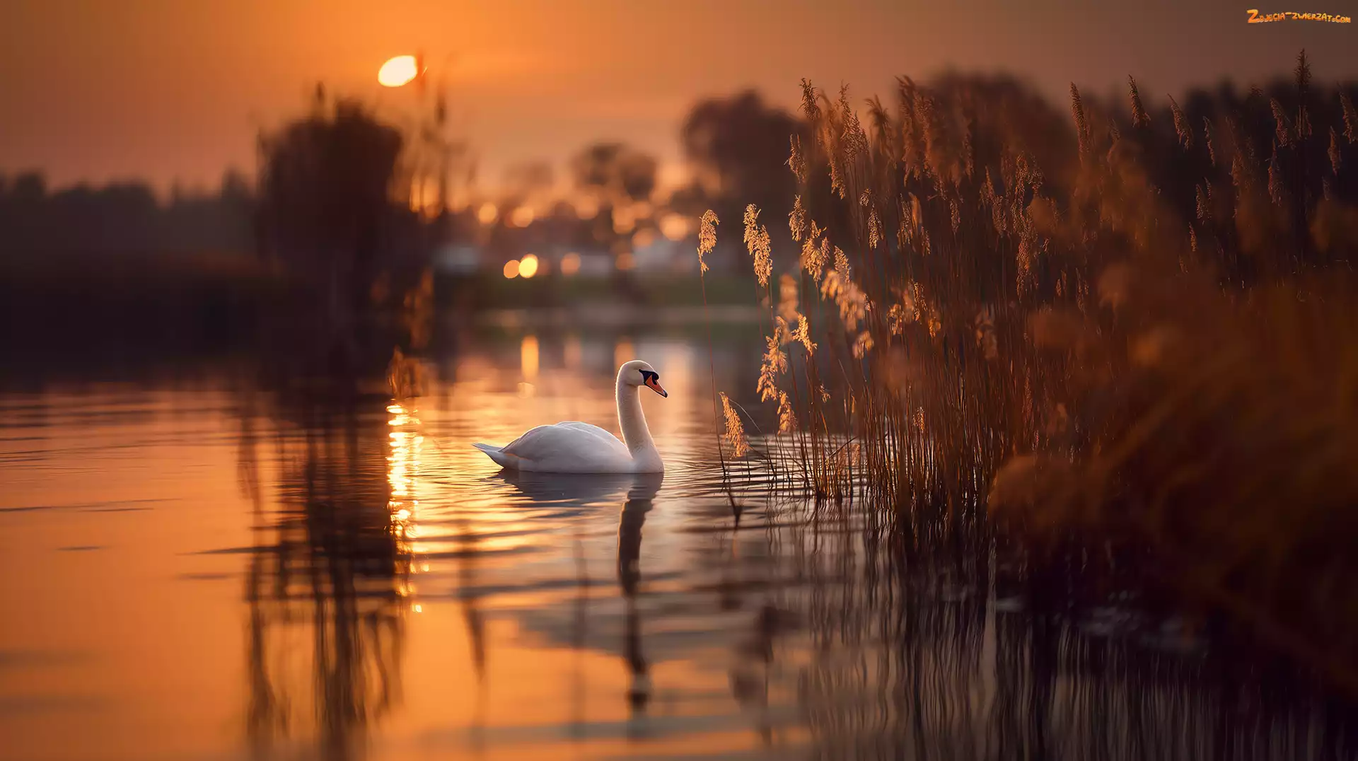 Szuwary, Jezioro, Grafika AI, Łabędź, Ptak