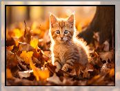Jesień, Liście, Grafika AI, Kot, Rudy