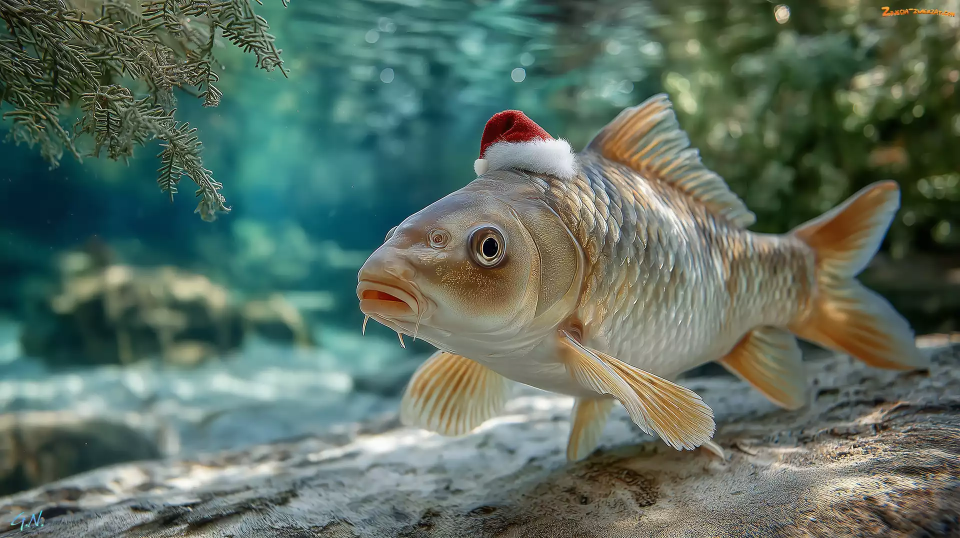 Zdjęcie: Mikołaja, Czapka, Grafika AI, Karp, Ryba