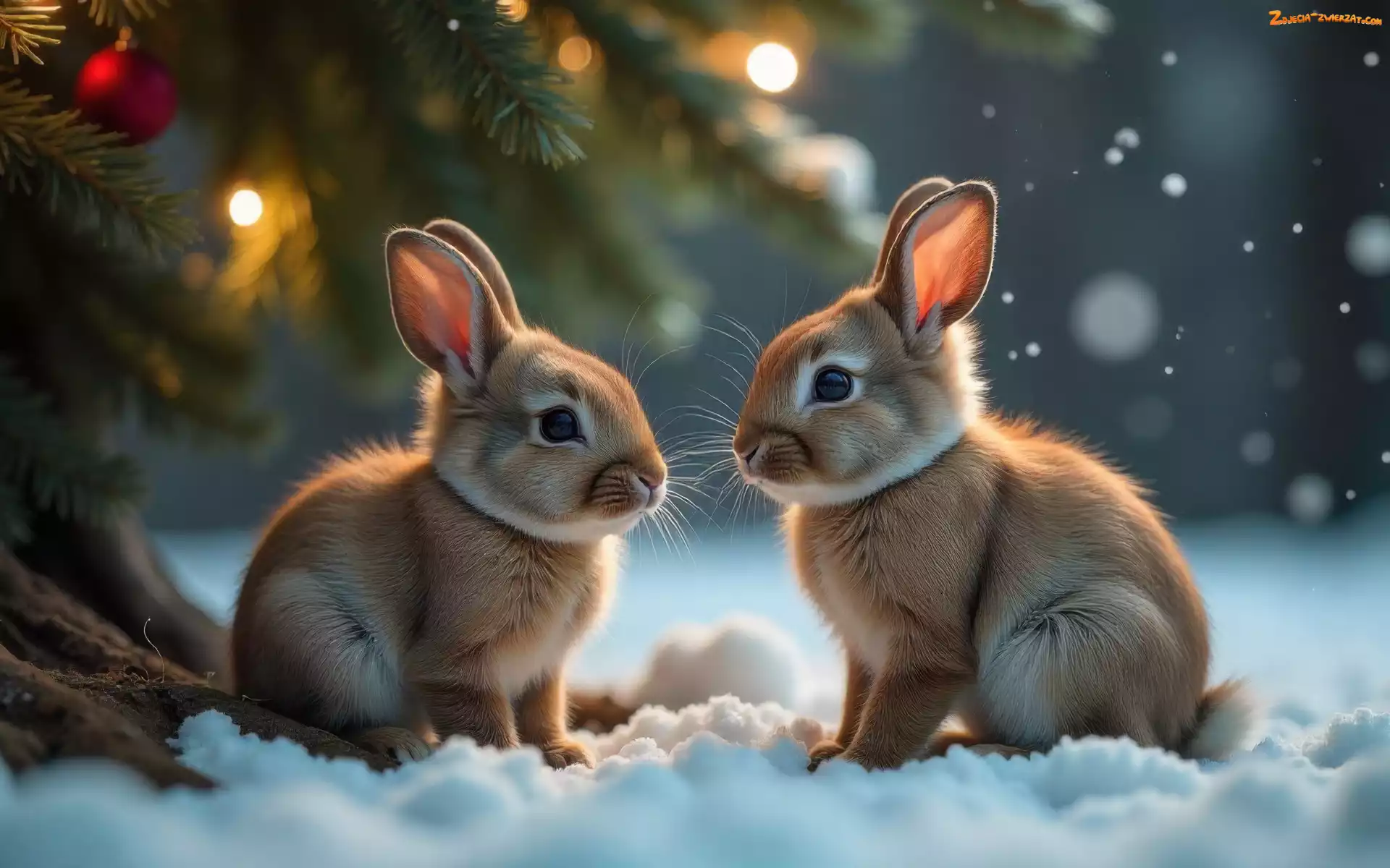 Zdjęcie: Króliki, Dwa, Grafika AI, Zima, Śnieg