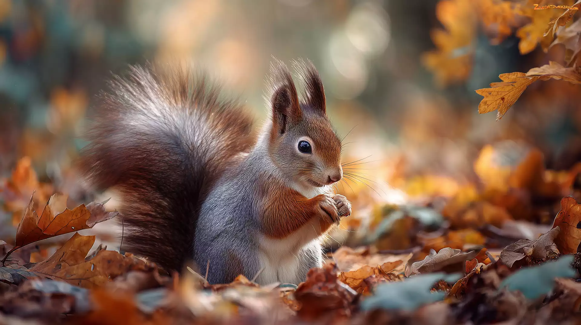 Zdjęcie: Liście, Jesienne, Grafika AI, Wiewiórka, Suche