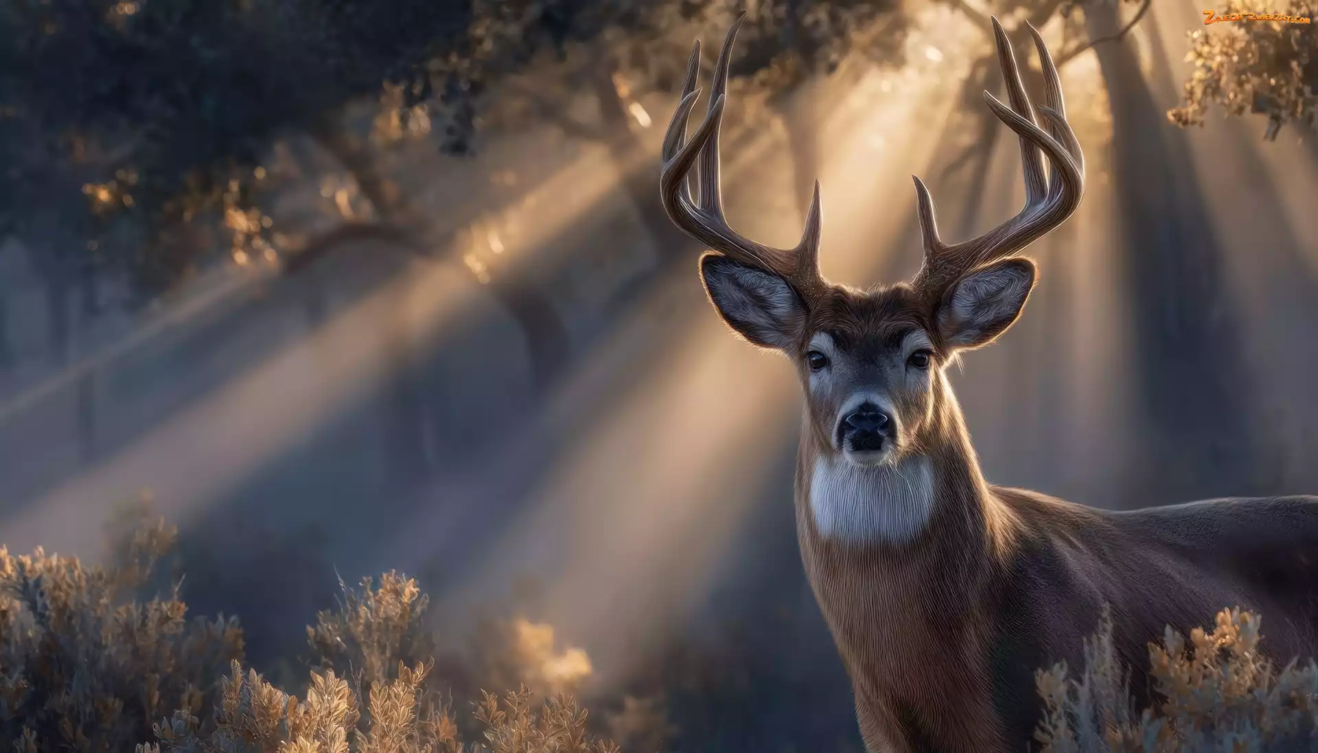 Zdjęcie: Jeleń, Las, Grafika AI, Przebijające światło