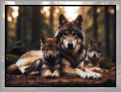 Zdjęcie: Wilczki, Młode, Grafika AI, Wilki, Wilczyca