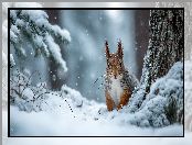 Gałązki, Pień, Grafika AI, Wiewiórka, Zima
