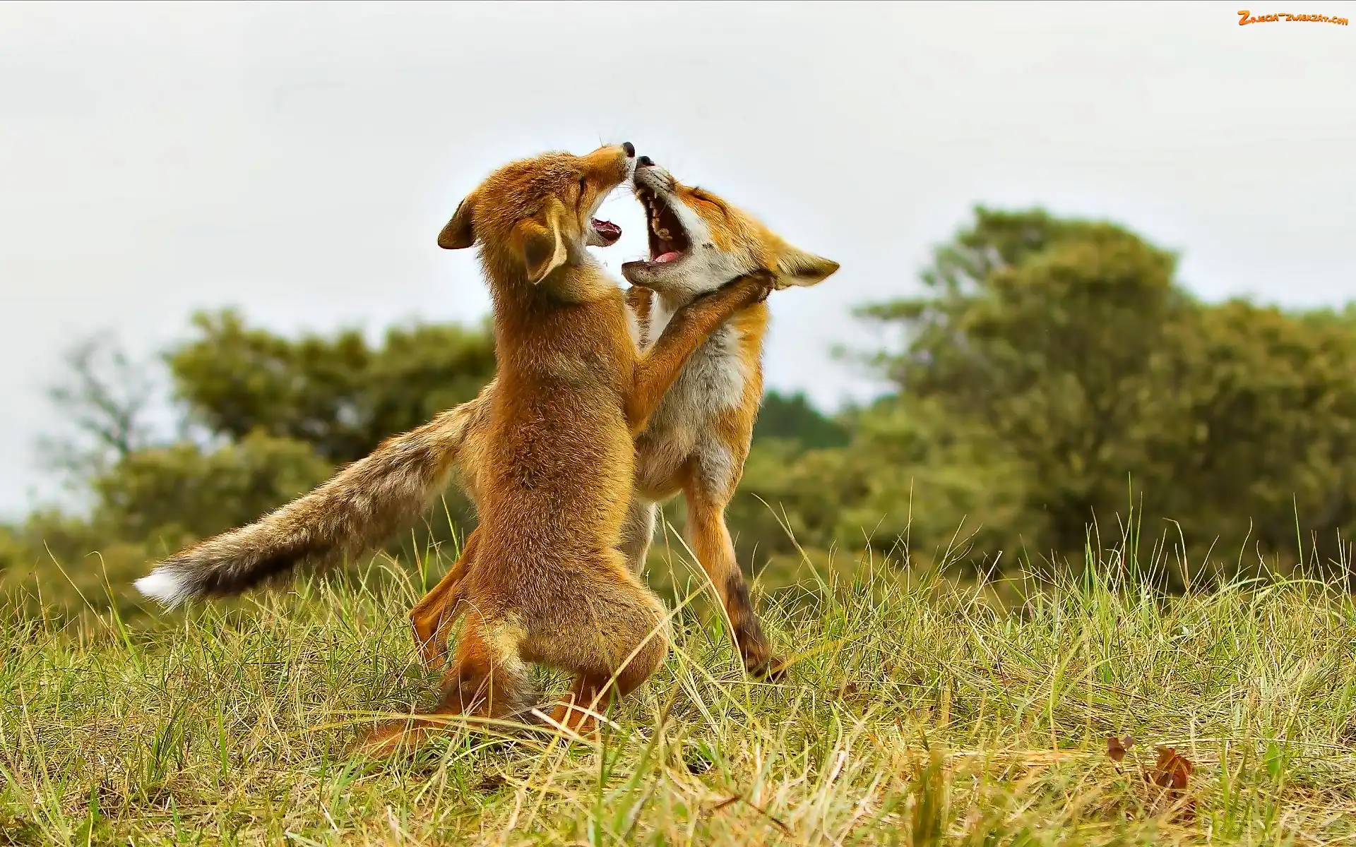 Zdjęcie: Lisy, Łąka, Walczące