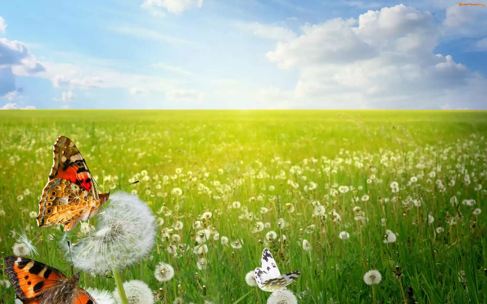 Zdjęcie: Motyle, Łąka, Dmuchawce