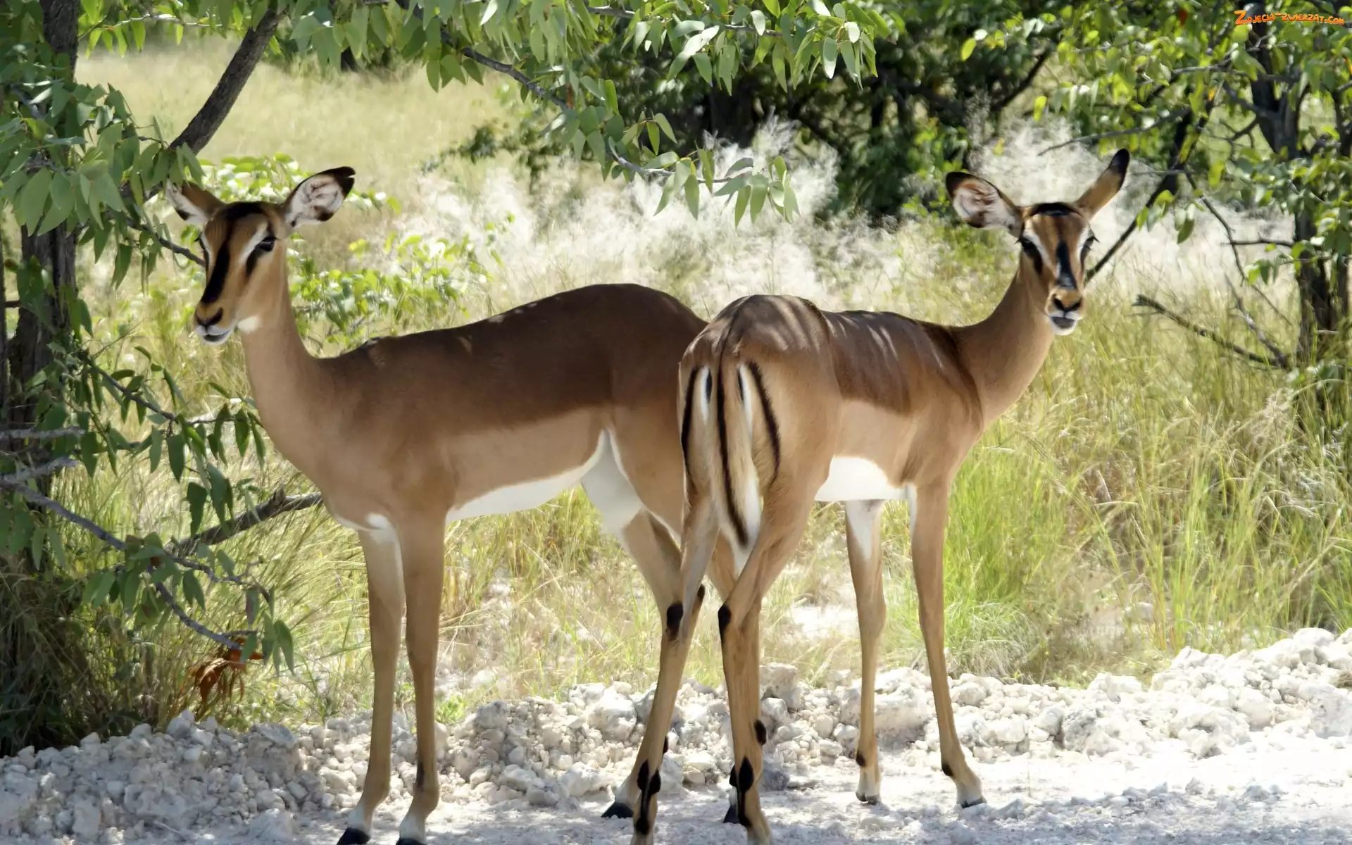 Zdjęcie: Antylopy, Drzewa, Dwie, Trawy