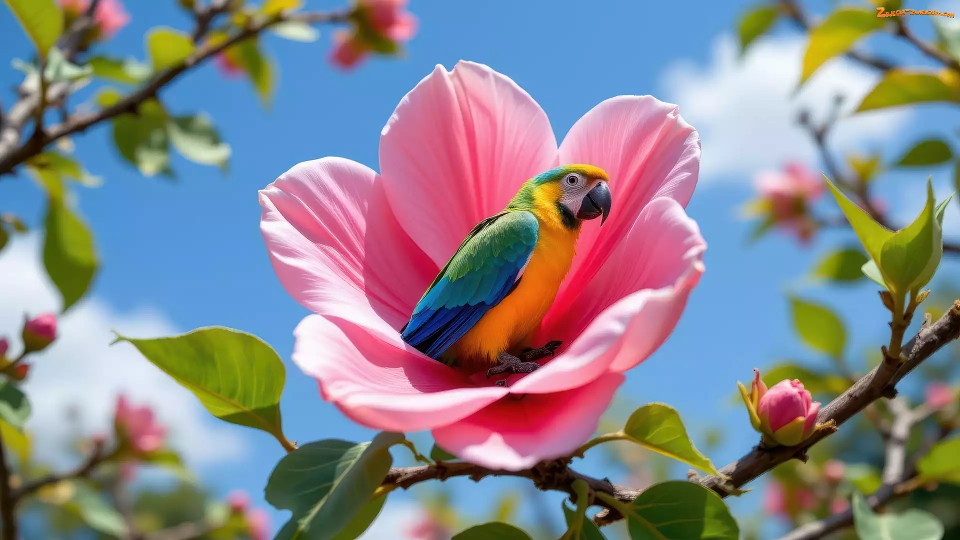 Zdjęcie: Kwiat, Kwitnąca, Papuga, Ara, Gałązka, Różowy