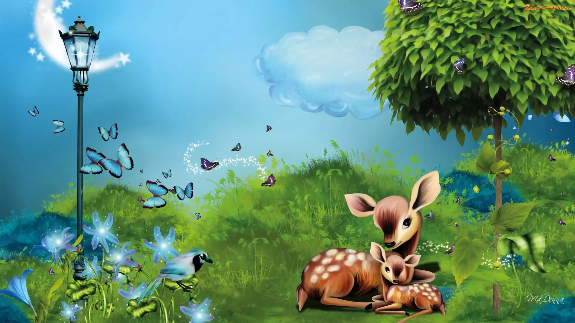 Zdjęcie: Art, Trawa, Sarenki, Dwie, Drzewo