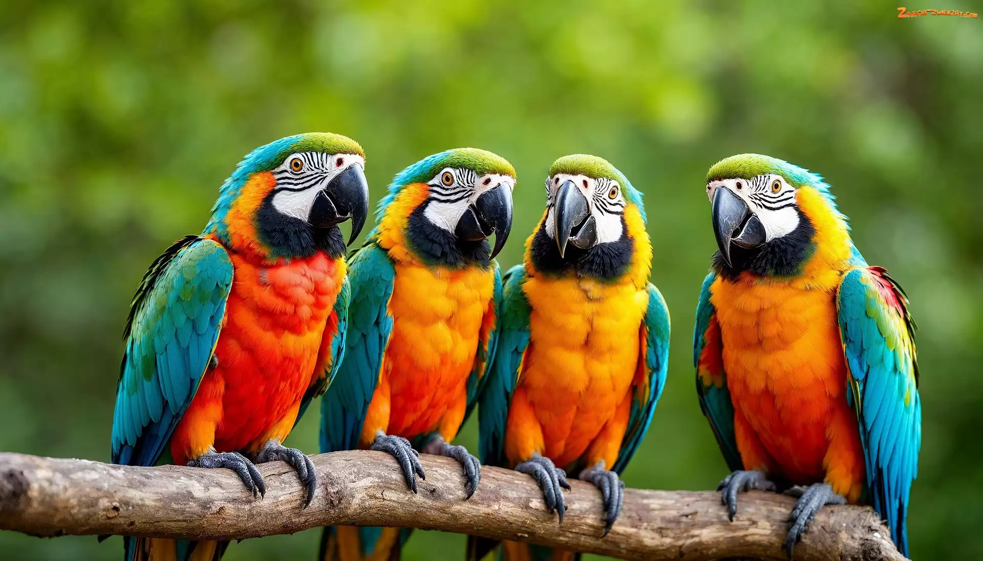 Zdjęcie: Cztery, Papugi, Gałąź, Ary