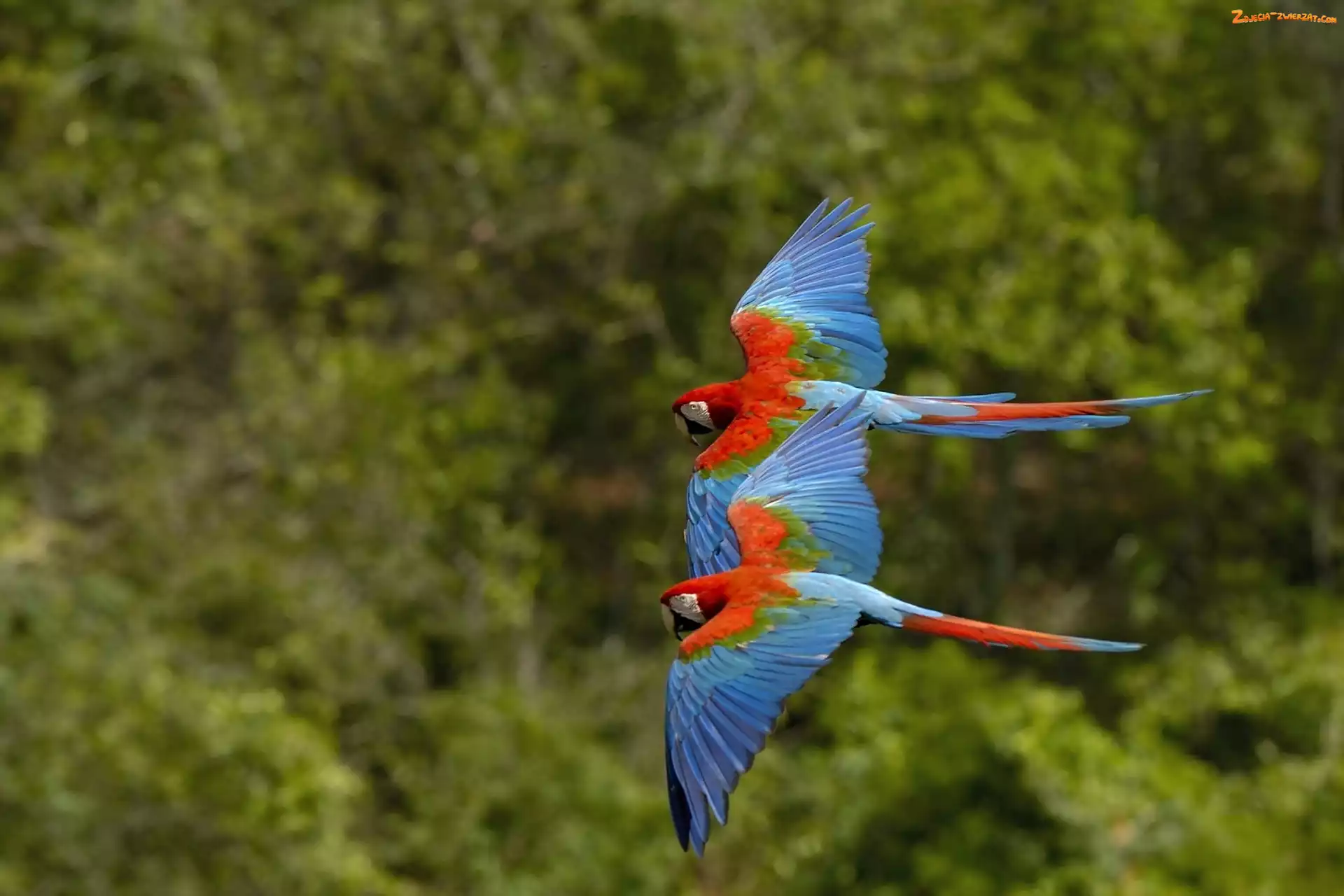 Zdjęcie: Ary, Locie, Papugi, Dwie, W