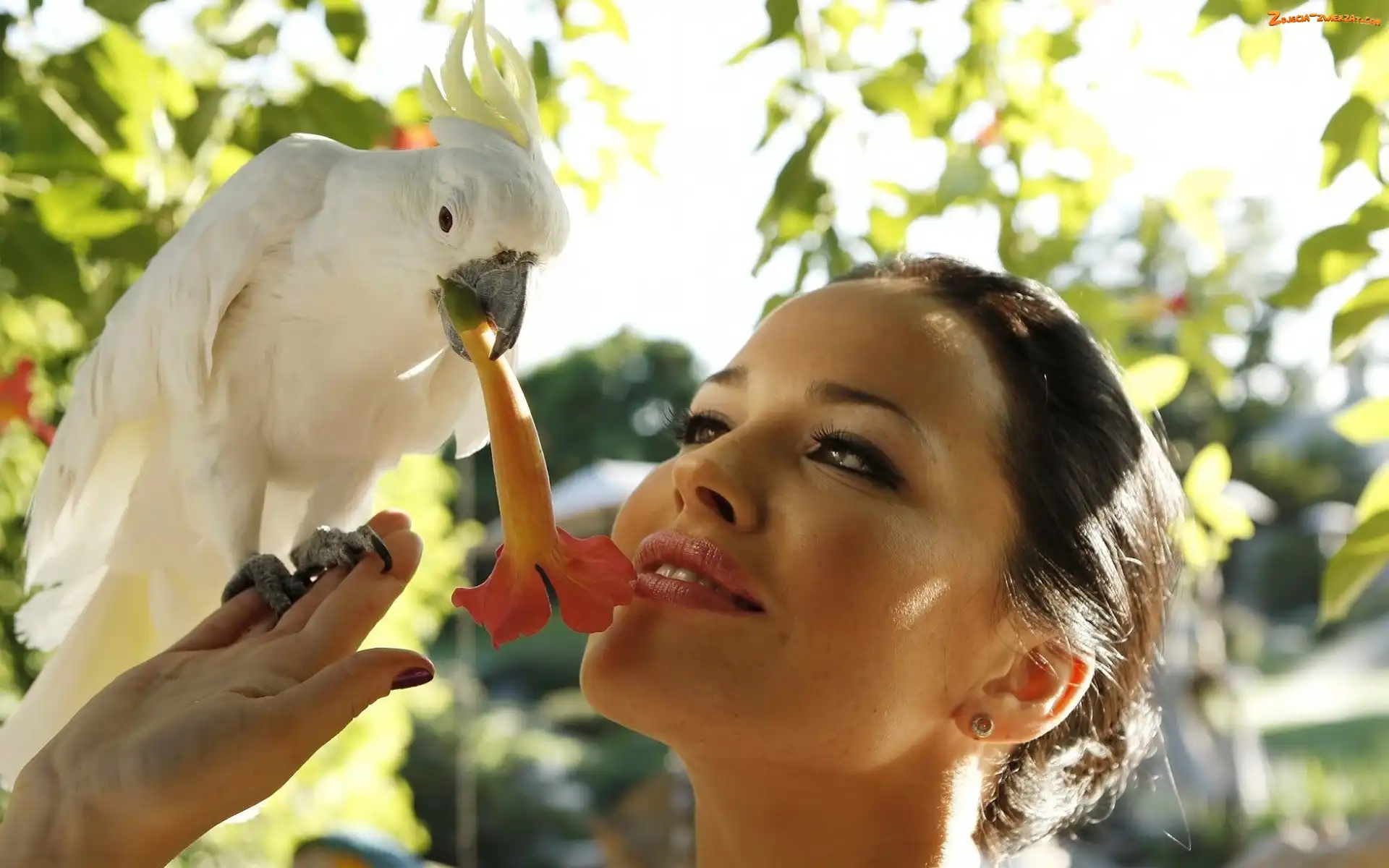 Zdjęcie: Dasza Astafjewa, Kobieta, Kakadu biała, Papuga, Modelka, Ptak
