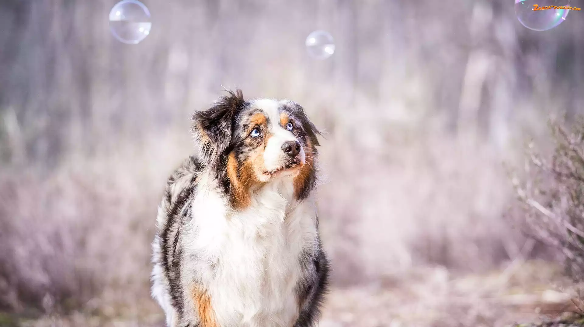 Zdjęcie: Australian shepherd, Bańki, Owczarek australijski, Spojrzenie