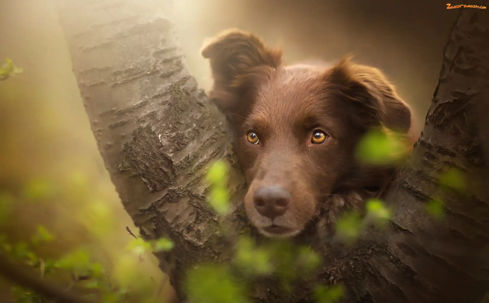 Zdjęcie: Australian shepherd, Drzewo, Owczarek australijski, Mordka