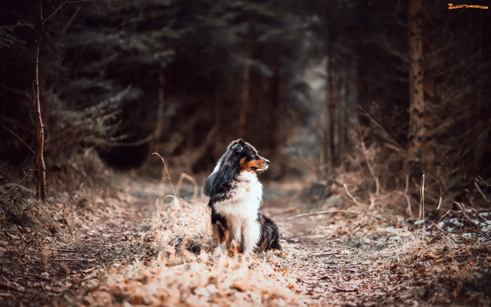 Zdjęcie: Australian shepherd, Las, Owczarek australijski, Droga