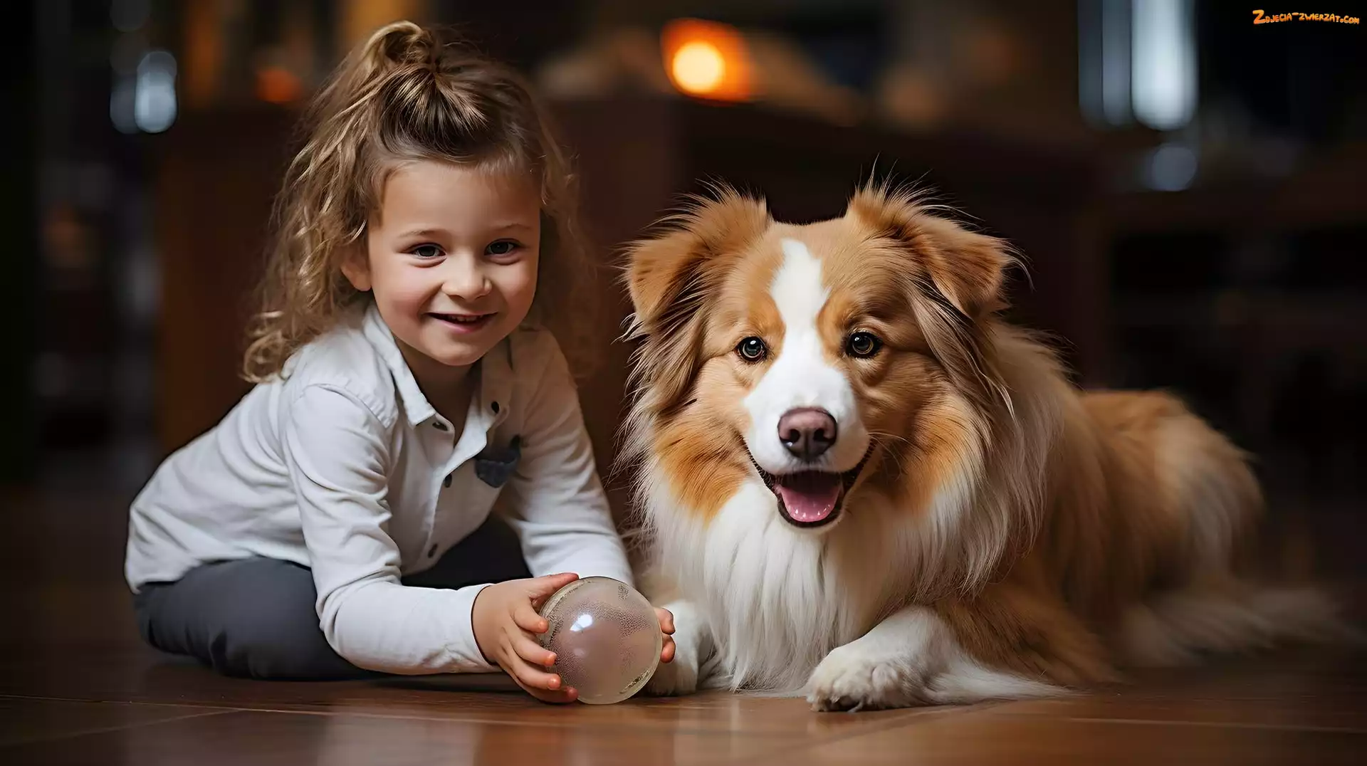 Zdjęcie: Pies, Piłka, Owczarek australijski, Dziecko, Dziewczynka